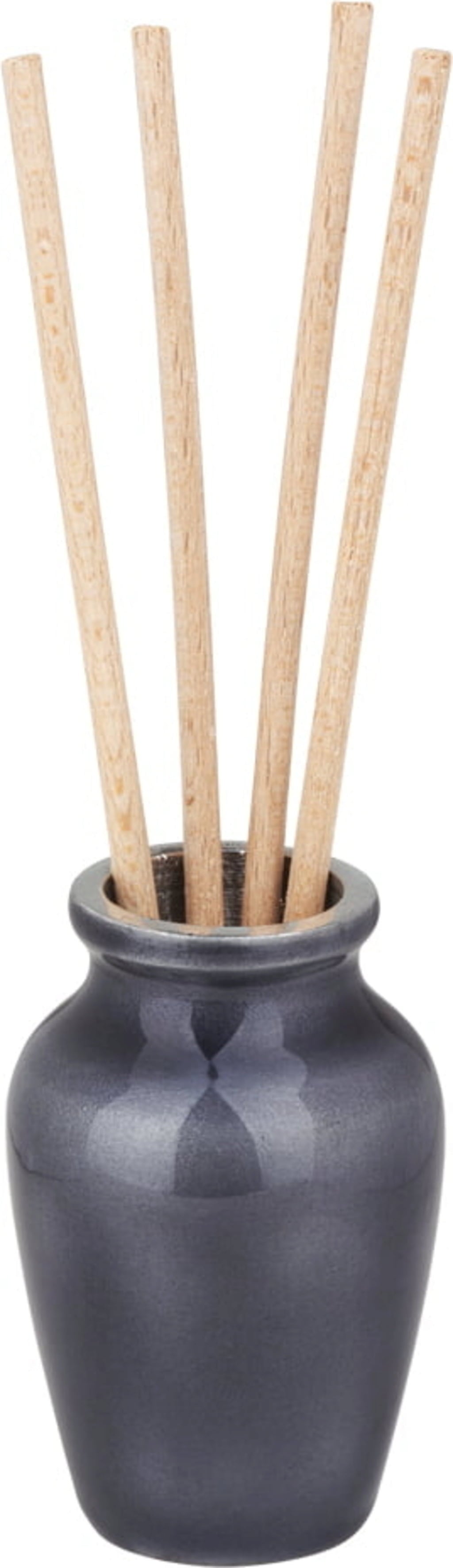 This simple, elegant ceramic vase serves as a holder for scented reeds. While the reeds provide a lovely scent, the vase adds style to your home.