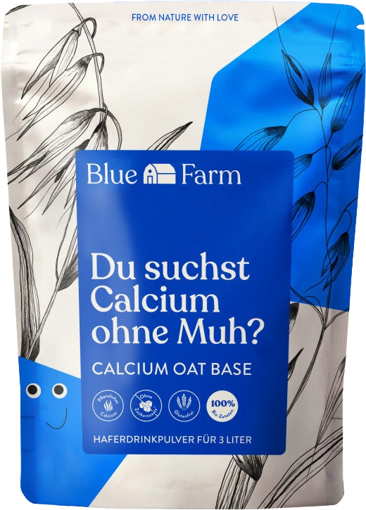 With Blue Farm's Calcium Oat Base, you can prepare a delicious and sustainable oat drink in no time, fresh and at home, without generating any packaging waste. This organic oat drink powder is enriched with red algae powder, a natural source of calcium. Perfect for a healthy diet, free from artificial additives, and ideal for everyday use in muesli, coffee, or baking.