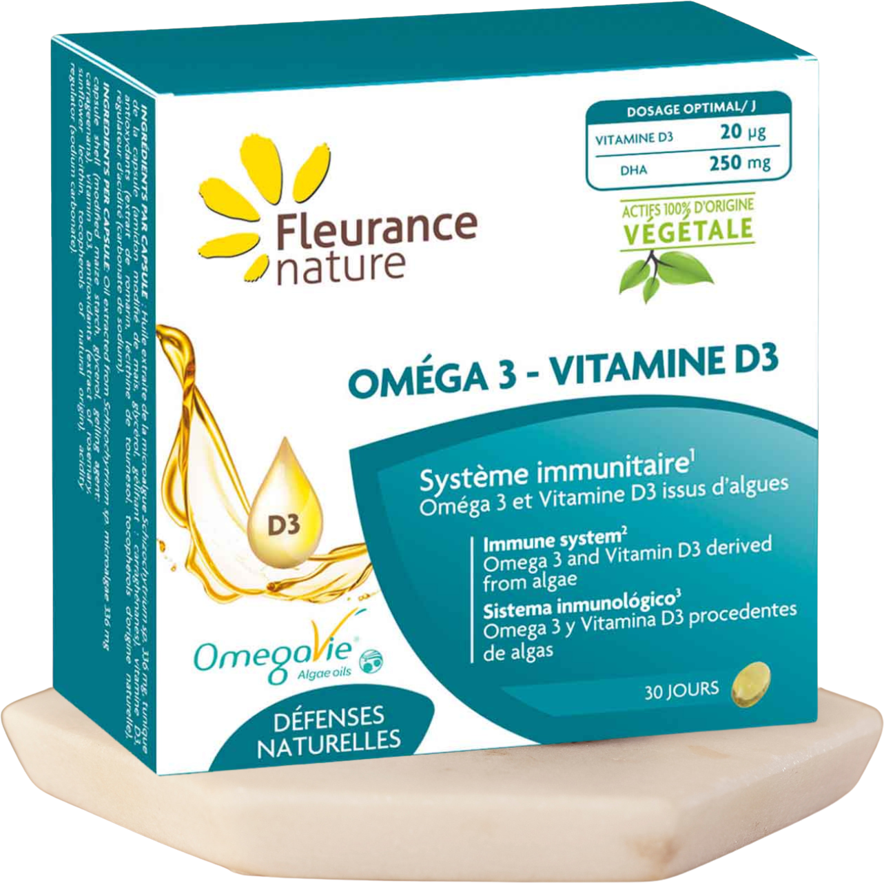 Fleurance Nature Omega 3 - Vitamin D3, 30 Softgel Capsules