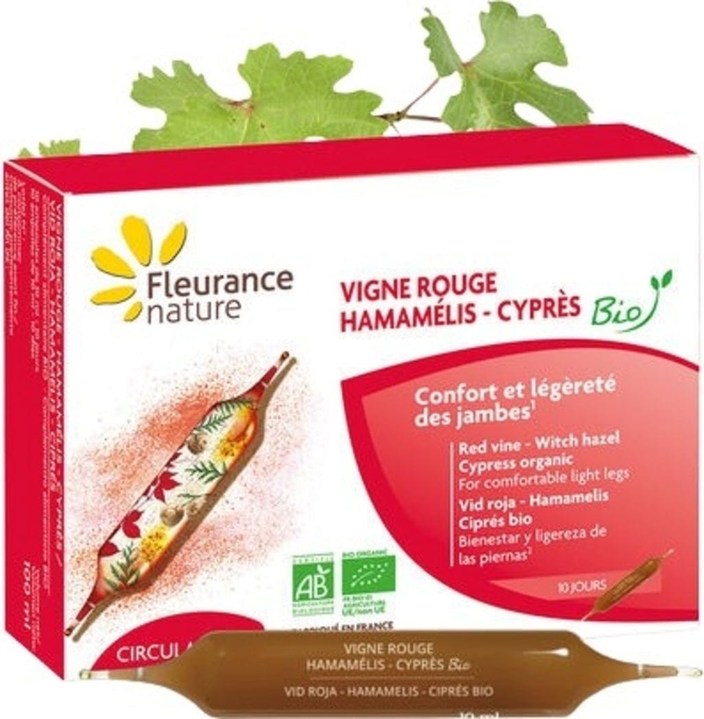 These ampoules combine three plants: red vine, witch hazel, and cypress. All are organically grown and processed. The ampoules have a blackcurrant flavour and are easy to take.