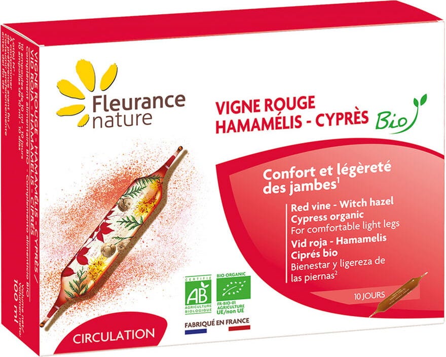 Fleurance Nature Organic Red Vine, Witch Hazel & Cypress, 10 Ampoules