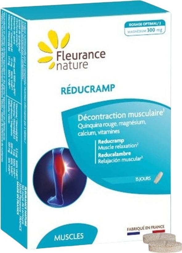 Magnesium citrate, Calciumcarbonat, Cinchona succirubra extract, Magnesium (as Oxide), Cornstarch, Rice flour, Filler (Gum arabic), Vitamins (Vitamin B12, Vitamin D3 (cholecalciferol), Vitamin B6, Vitamin B1)