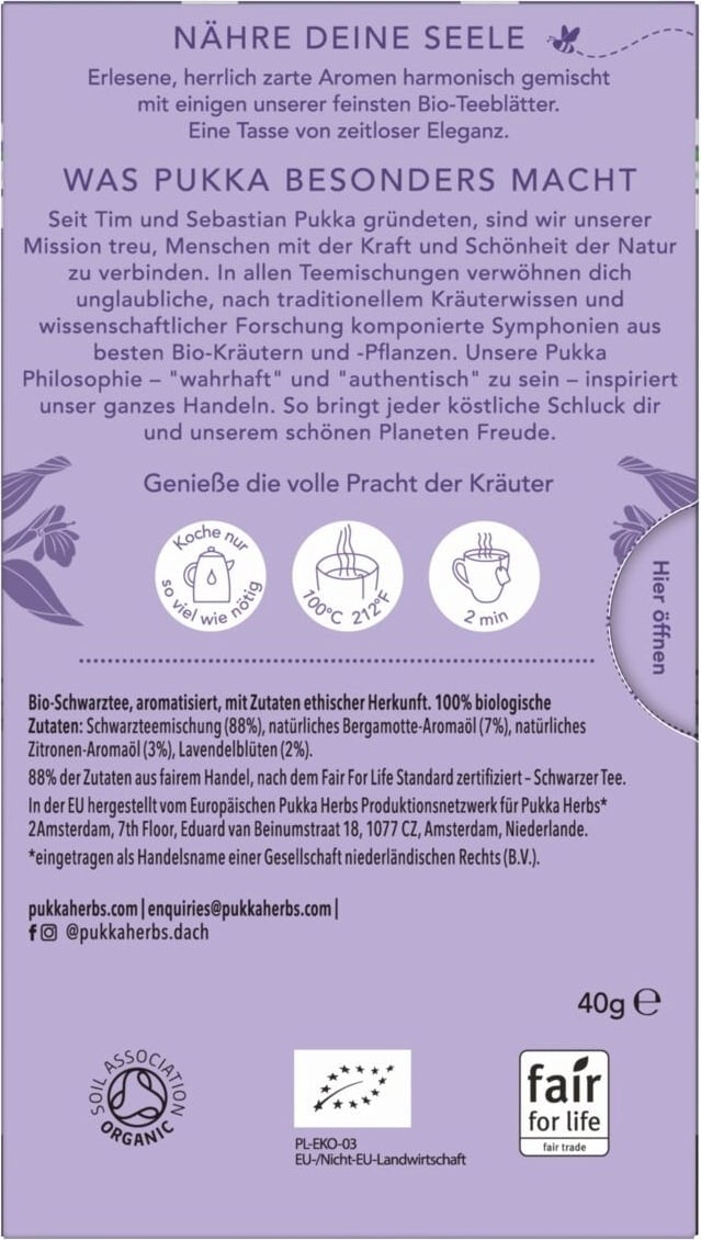 | Manufacturer: | Lipton Teas and Infusions Germany GmbH, Axel-Springer-Platz 3, c/o WeWork, 20355, Hamburg, Germany, kontakt@pukkaherbs.de |