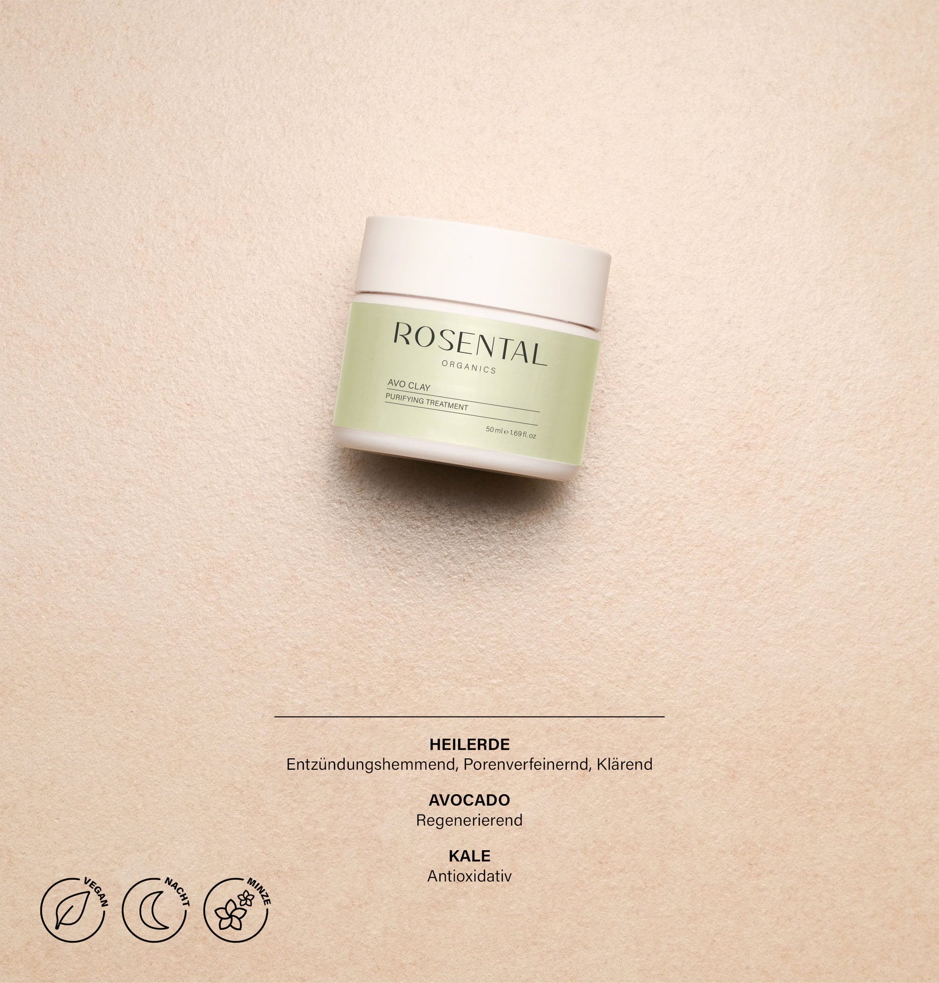 The Avo Clay Mask by Rosental Organics is formulated for oily, blemished and combination skin types to provide a pore-refining cleanse and remove blackheads. The powerful active ingredient complex with avocado, cucumber and clay improves the appearance of the skin and imparts a beautiful radiance. The mask can also be used for spot treatment on specific problem areas.