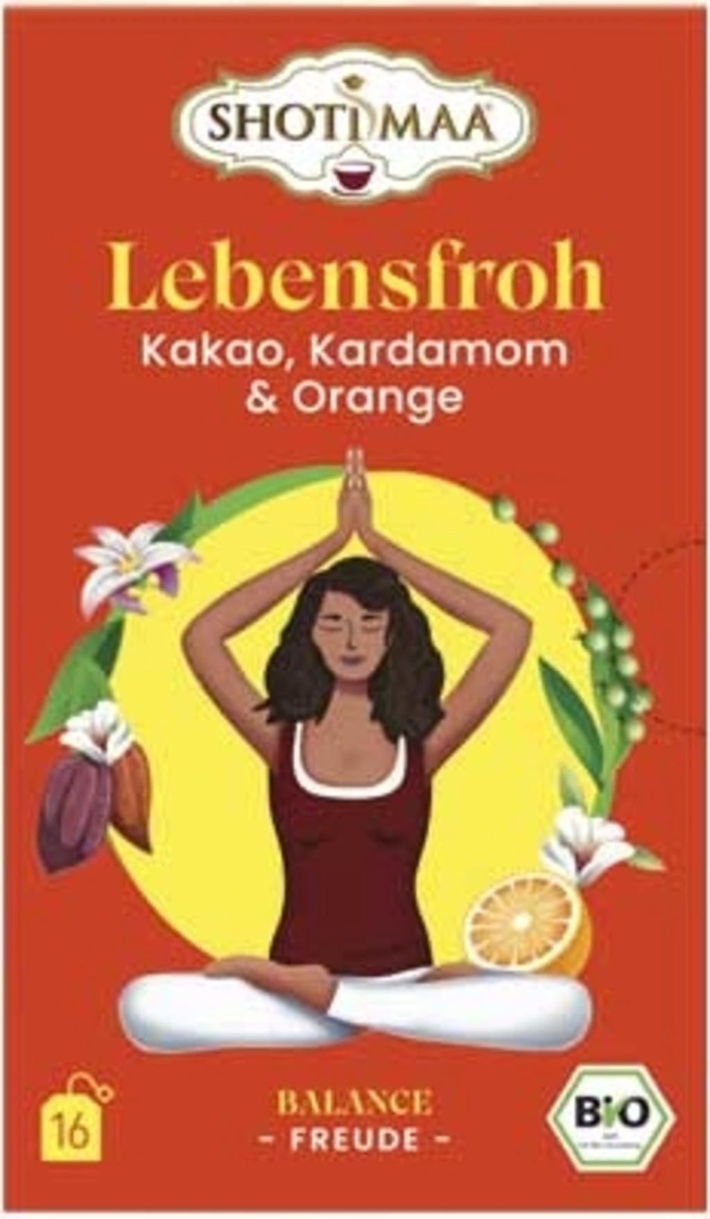 SHOTI MAA Organic Tea Lebensfroh (Joy for Life) - Cocoa, Cardamom & Orange, 16 tea bags (32 g)