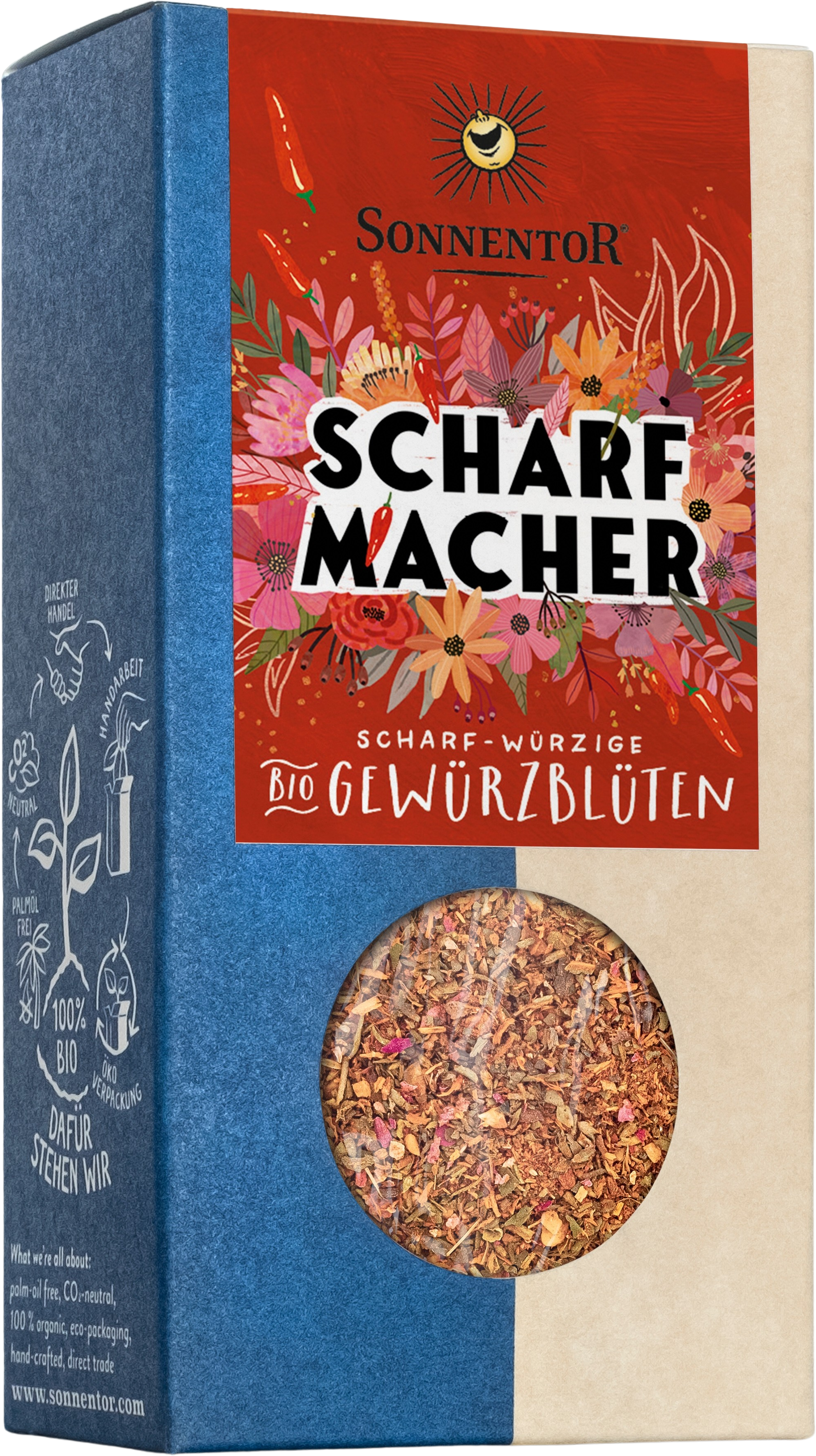 Hot Stuff ignites the fire in soups, pasta sauces and stews - if you're a fan of the taste of peppers and chilli, add some heat to your dishes with the powerful blend of spices in the Blossom Spice blend. This organic mixture gives hearty meals and vegetarian food a pleasant savoury taste. Getting to know this spice mixture is certainly worthwhile!