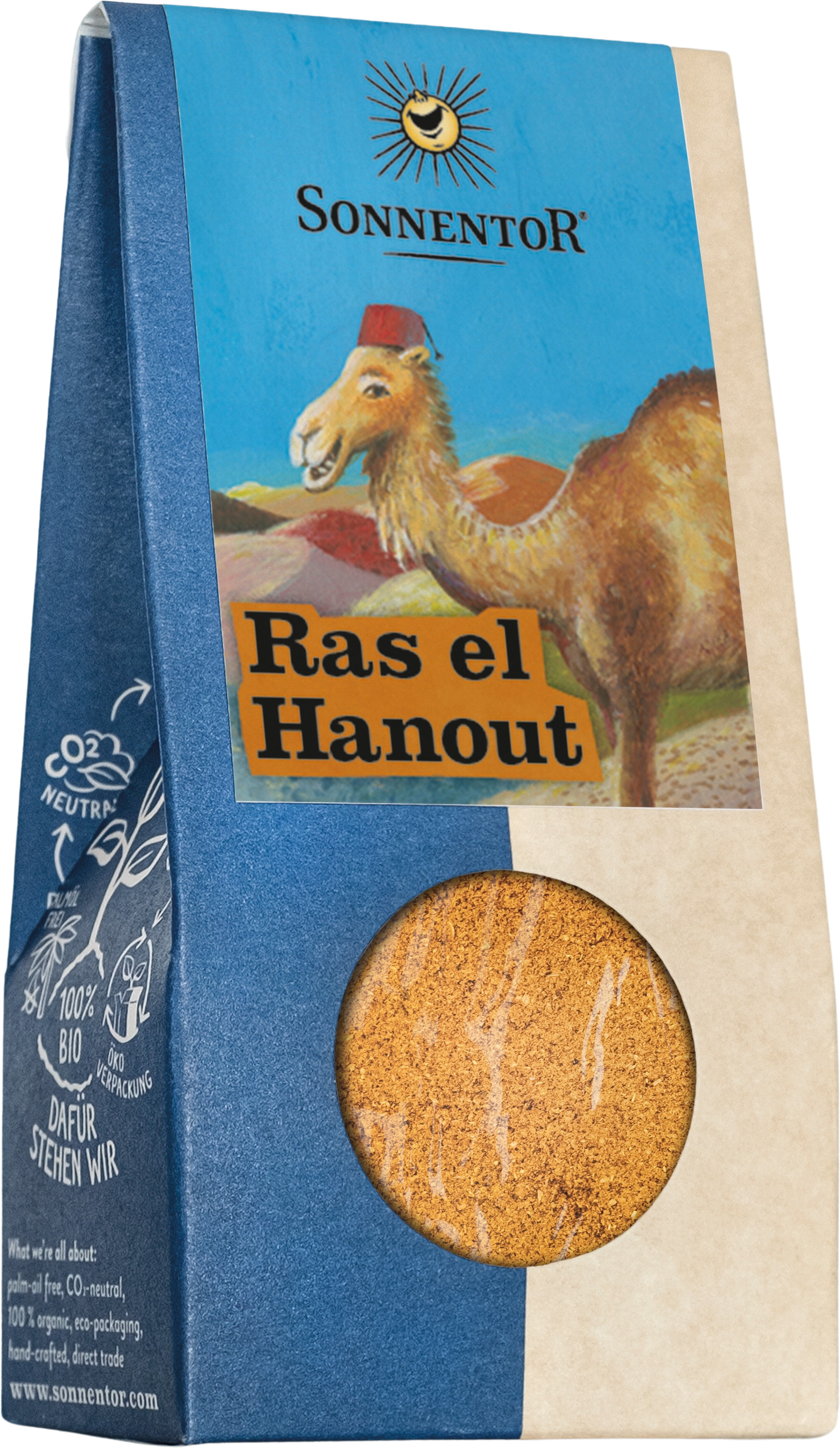 Ras el Hanout is Arabic and roughly translated, means "the boss of the shop". This refers to a spice shop, because this spice is usually a special creation made by the shop owner himself. Ras el Hanout is mainly distributed in Morocco, but is becoming more popular worldwide. Ingredients such as turmeric, cumin, paprika, cardamom, nutmeg, cinnamon and cloves sparkle in a unique variety of flavours.